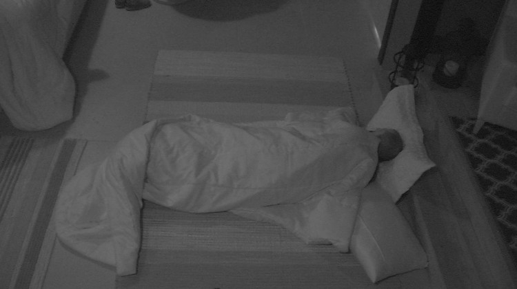 Sozinho no Bangalô do Líder, Kaysar deita no chão