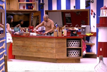 Gleici levanta da cama e encontra Kaysar na cozinha. O sírio convida a sister para curtir a piscina...