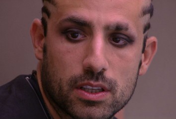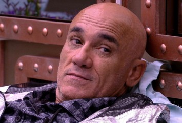 Ayrton e Kaysar estão no banheiro da casa e o pai de Ana Clara ajeita o corte de cabelo do sírio. ...
